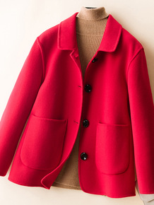 红色双面羊绒大衣女中长款2021年新款小个子短款羊...