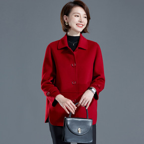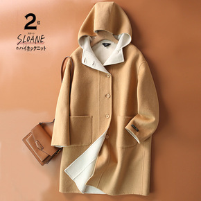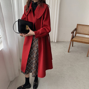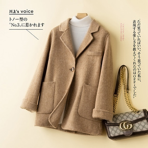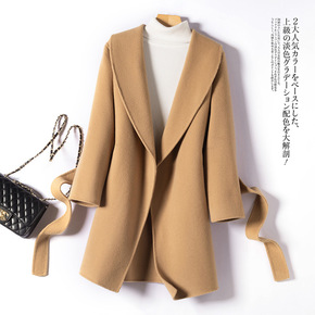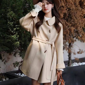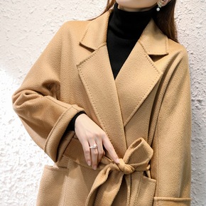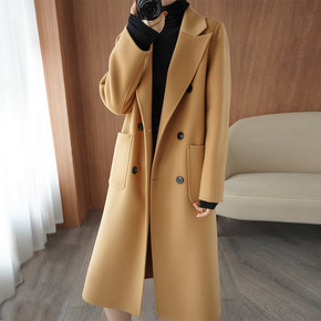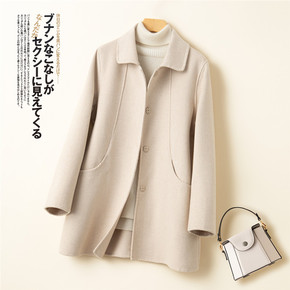 2021年新款西装领双面羊绒大衣女冬中长款小个子羊...