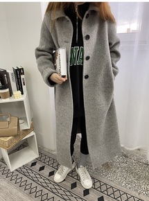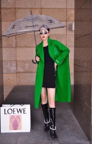 2022新款欧版西装领羊绒大衣女中长款宽松显瘦绿色...