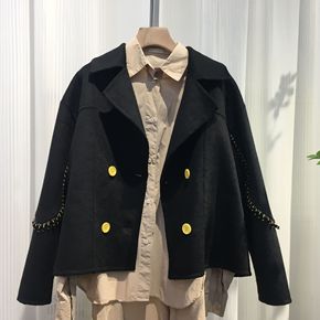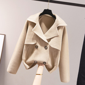 2021秋冬新款小个子羊毛呢子百搭显瘦手缝西装双面...