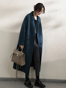 秋冬新款纯羊毛双面呢大衣女中长款修身毛呢子外套显瘦...