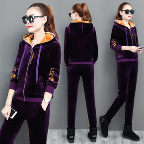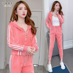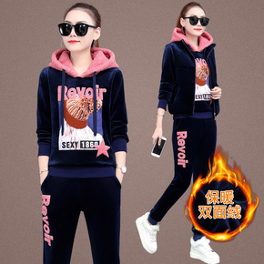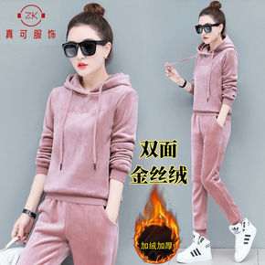 加绒加厚休闲运动套装女2021秋冬新款时尚双面金丝...