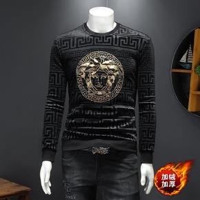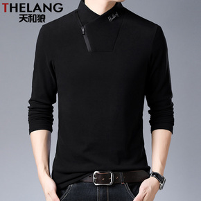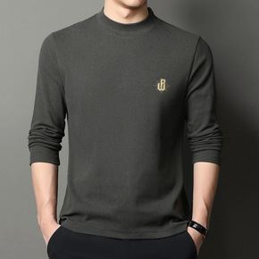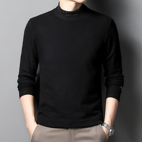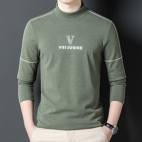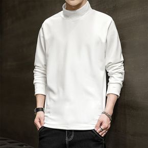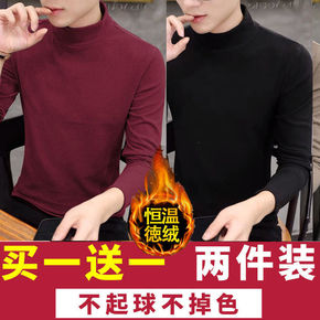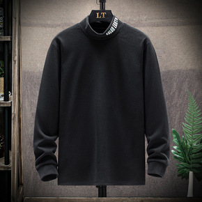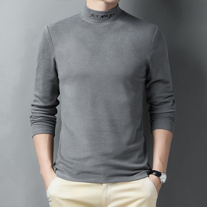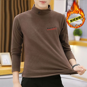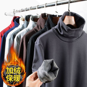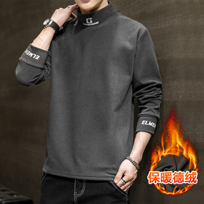 半高领男士长袖T恤冬款双面绒打底衫卫衣休闲衣服潮流...