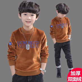 童装男童加绒卫衣秋冬款儿童加厚双面绒男孩打底衫中大...