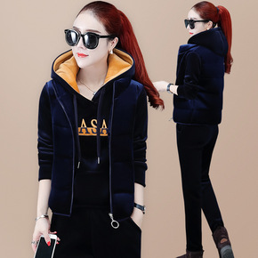 双面绒卫衣女2019新款冬季加厚保暖长袖休闲服三件...