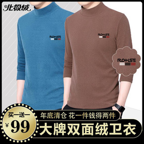 秋冬德绒半高领打底衫卫衣双面绒中青年男士长袖T恤保...