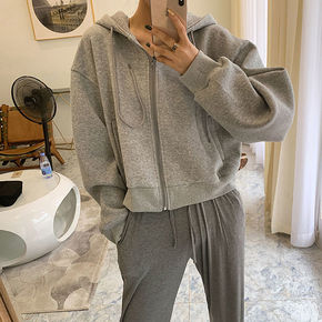 金丝绒套装女秋冬新款加绒加厚宽松休闲运动服外套连帽...