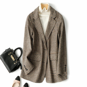 2021秋冬新款流行格纹双面呢西装羊绒大衣女装韩版...
