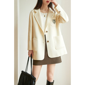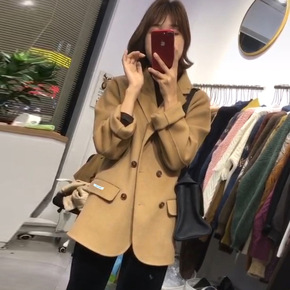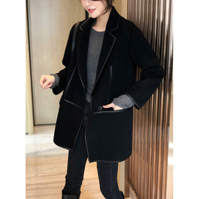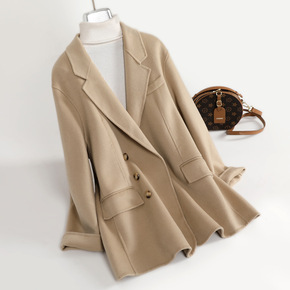 西装领双面羊绒大衣女羊毛毛呢外套秋冬2021年新款...