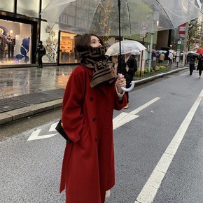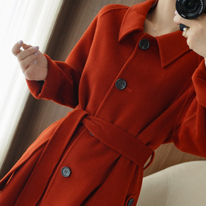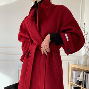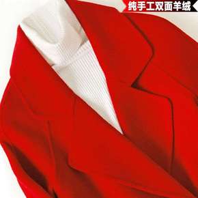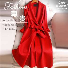 红色双面羊绒大衣女潮...