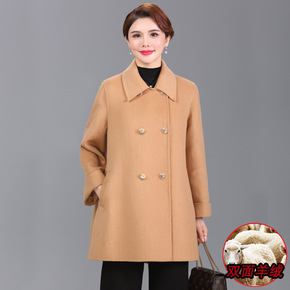 中年妈妈秋冬双面羊绒呢子大衣中长款中老年女春装大码...