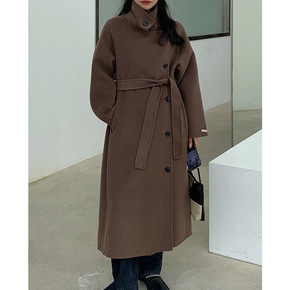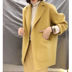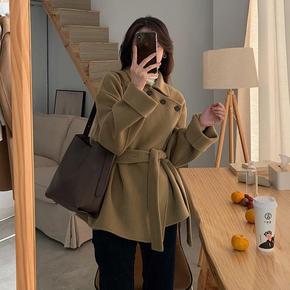 【现货】韩版手缝双面羊绒羊毛呢菱格大衣女21秋冬新...