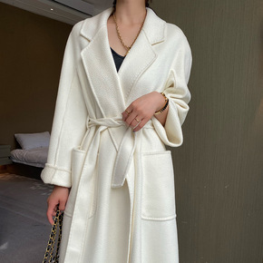 2021秋冬新款高端白色水波纹双面羊绒大衣长款睡袍...