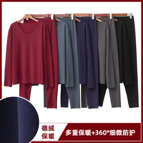 2021冬季新款韩版双面德绒v领长袖打底保暖套装休...