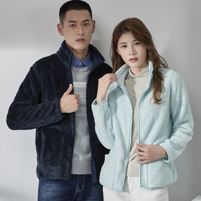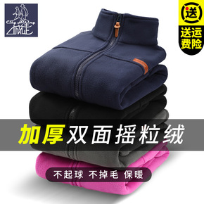 摇粒绒珊瑚绒抓绒衣外套女男士户外保暖加绒厚两面穿绒...