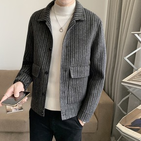 秋冬男士双面尼西服韩版100羊毛呢外套大衣西装领短...