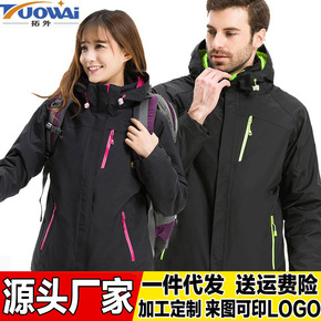 厂家批发户外服装冲锋衣男女三合一防风水抓绒内胆登山...