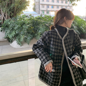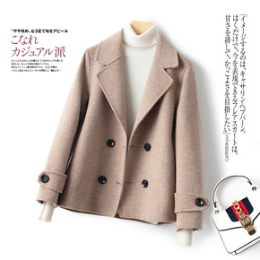 B8382秋冬季新款女装小香风短款双面羊绒大衣千鸟...