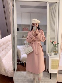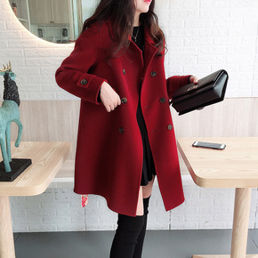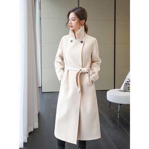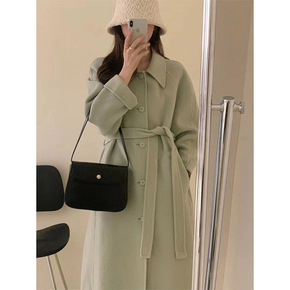 2021年秋冬新款韩版双面羊绒大衣女中长款系带羊毛...