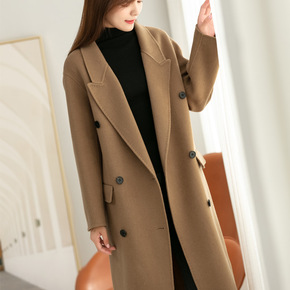 2021年新款秋冬季高端双面羊绒大衣女中长款驼色呢...