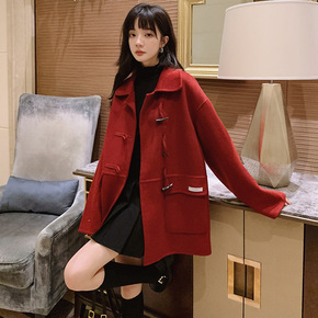 年轻款双面羊绒大衣女宽松韩版西装外套羊毛双面呢小个...
