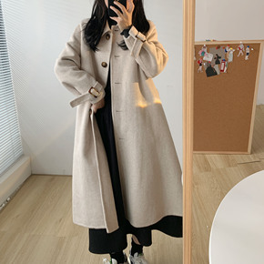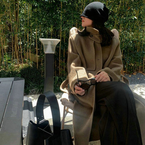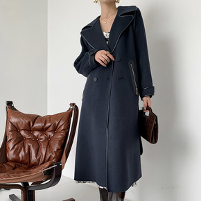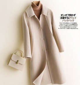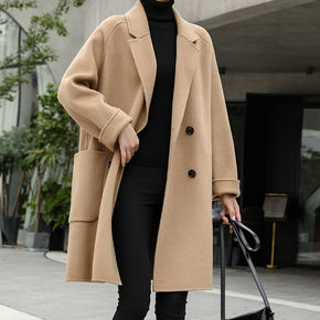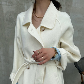 2021早秋新款羊毛呢外套双面羊绒呢子大衣女中长款...