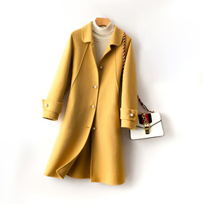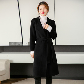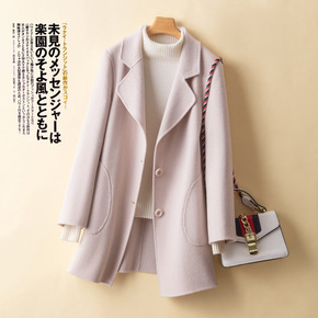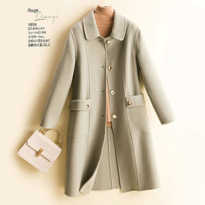 新款羊绒大衣女中长款修身小个子西装风双面羊毛呢子高...