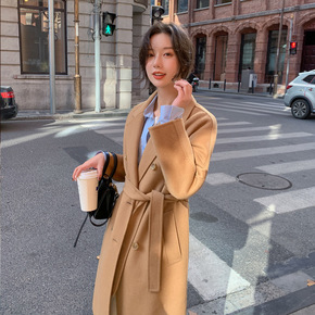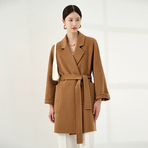 M家101801同款羊毛双面呢大衣女中长款小个子驼...