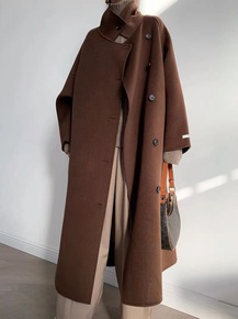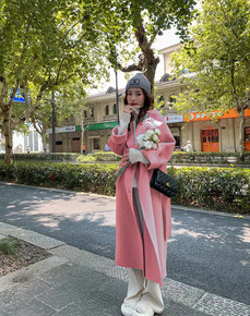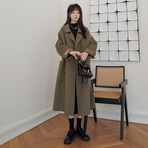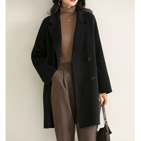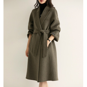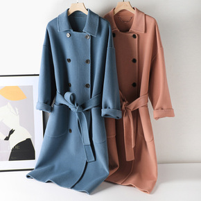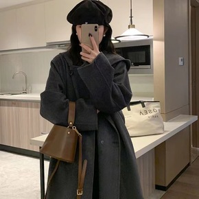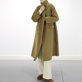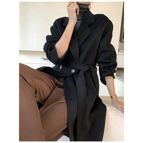 2022年秋冬新款双面手缝羊毛呢大衣优雅宽松过膝双...