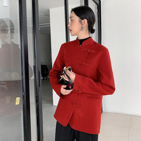 反季时尚宽松双面羊绒韩版西装领2022新款春季中长...