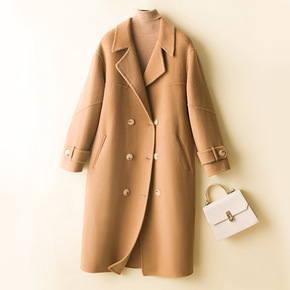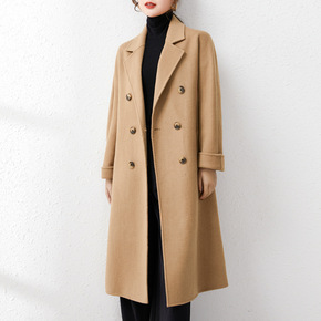 101801驼色双面羊绒大衣女中长款2022年新款...