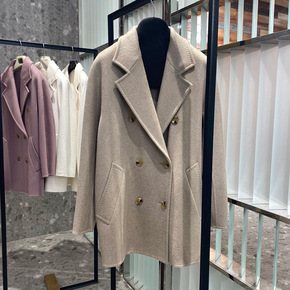 高版本M家Sella经典廓形双排扣双面山羊绒大衣女...