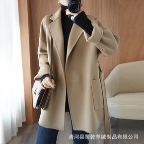 高端【100纯山羊绒】双面羊绒大衣女装厂家一手货源...