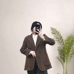 春装双面呢复古格子小西装毛呢外套女双面羊绒羊毛大衣...