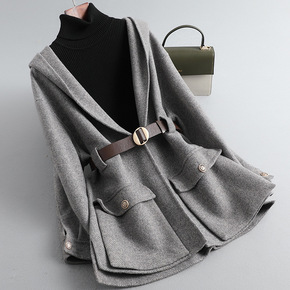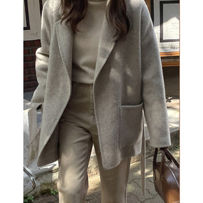 2021冬季新款韩国东大门通勤翻领双面羊绒羊毛呢马...