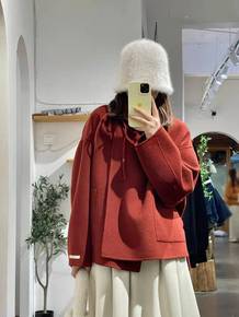 红色双面羊绒大衣女短款设计感小众洋气质韩系温柔冬装...
