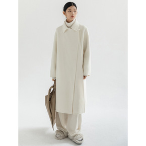 欧品荟白色水波纹双面羊绒大衣女小个子秋冬装短款毛呢...