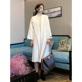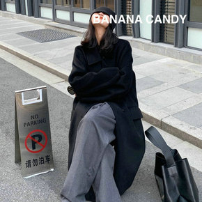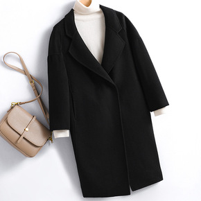 大连东越小个子韩版宽松中长款羊绒双面呢大衣女秋冬显...
