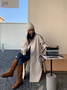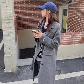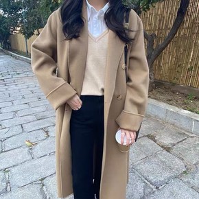 韩国chic秋冬季赫本风双面羊绒大衣女加厚气质宽松...