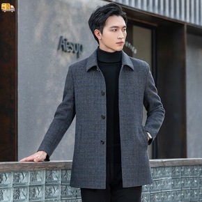 双面毛呢大衣男士中长款高级感100纯羊毛呢子羊绒风...