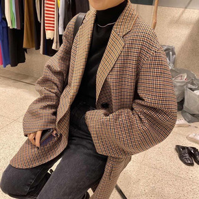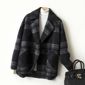 双面羊绒大衣女20冬款韩版通勤格子短款气质显瘦西装...
