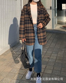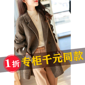 2021新款秋冬韩版双面毛呢格子羊绒大衣女时尚小个...