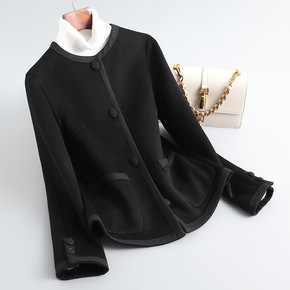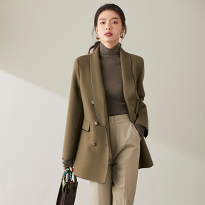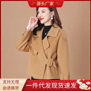 2021年新款法式感小个子茶歇风双面羊绒毛呢大衣外...