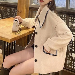 韩版小个子娃娃领显瘦毛呢外套短款2022秋冬新款双...