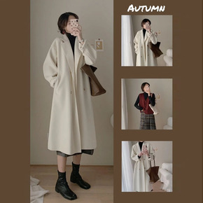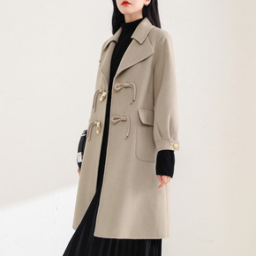 2021秋冬新款双面羊毛呢外套纯色中长款宽松显瘦驼...