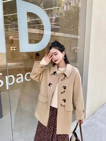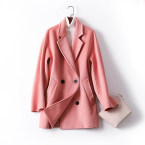 2021秋冬小个子双面呢羊绒大衣女中长款小西装羊毛...