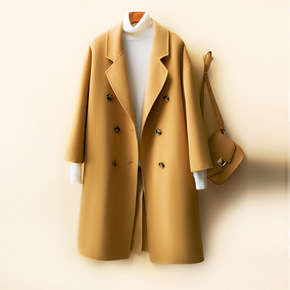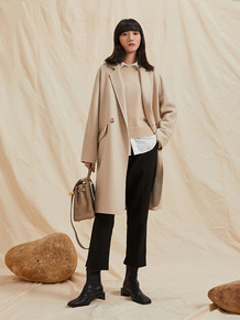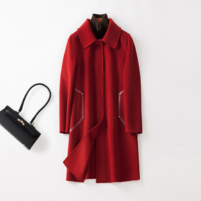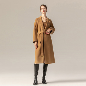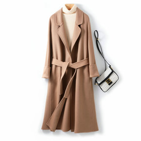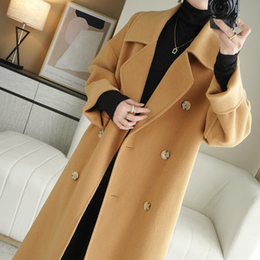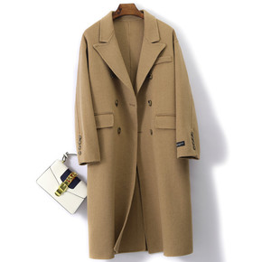 9.8%桑蚕丝2021秋新款手缝双面羊绒大衣女中长...