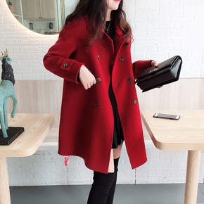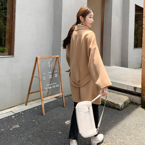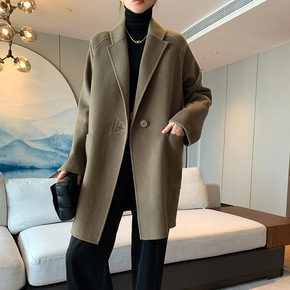 2021秋冬季新款毛呢大衣女双面羊绒小个子百搭中长...