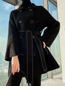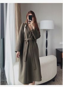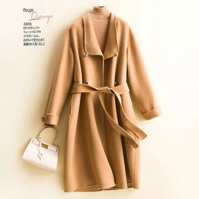 外翻领双排扣腰带呢子大衣双面羊绒大衣女中长款宽松毛...