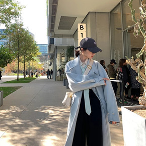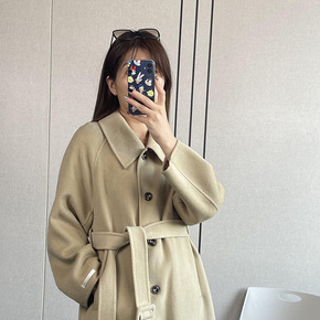 米色双面羊绒大衣女中长款宽松腰带羊毛呢外套 赫本风...